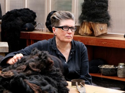 The rockstar-turned-artist revels in her solitude and shuts the door to everyone except her dog when she’s in the studio – which is also her flat