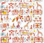 Other delightful highlights include Zandra Rhodes’s lipstick print textile, Andy Warhol’s food-themed prints incorporating purple watermelons and ice cream sundaes, and the humorous, colourful designs of the American satirical illustrators Saul Steinberg and John Rombola for Piazza Prints.